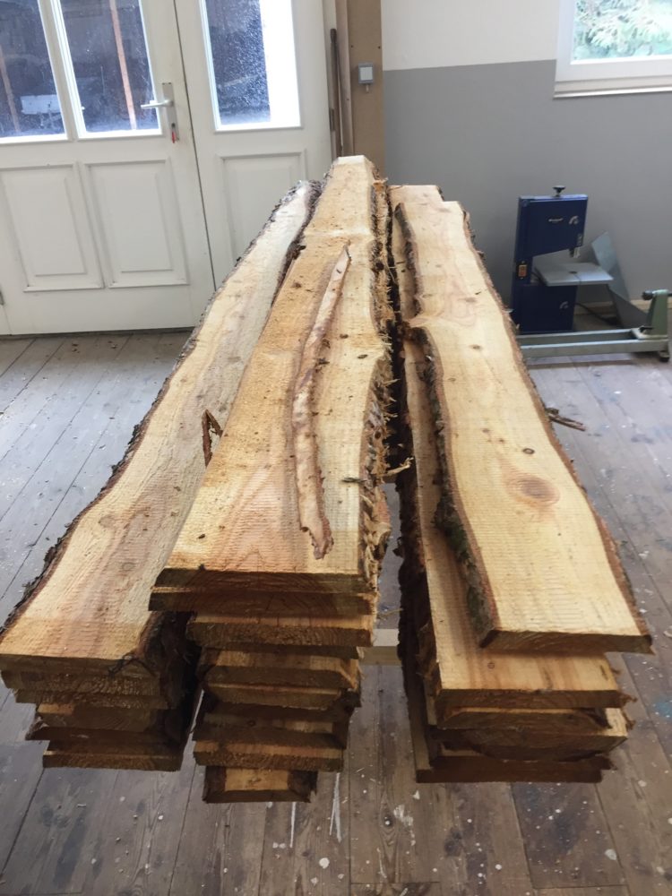 Da ich schon immer gerne mit dem Werkstoff Holz gearbeitet habe und den Beruf des Zimmermann`s gewählt habe, bot es sich doch einfach an die vorhandenen Räume zumindest teilweise als Holzwerkstatt zu nutzen. Schon in den 80ern habe ich immer einen interessierten Blick in die Tischlerei von Martjes Vater riskiert.